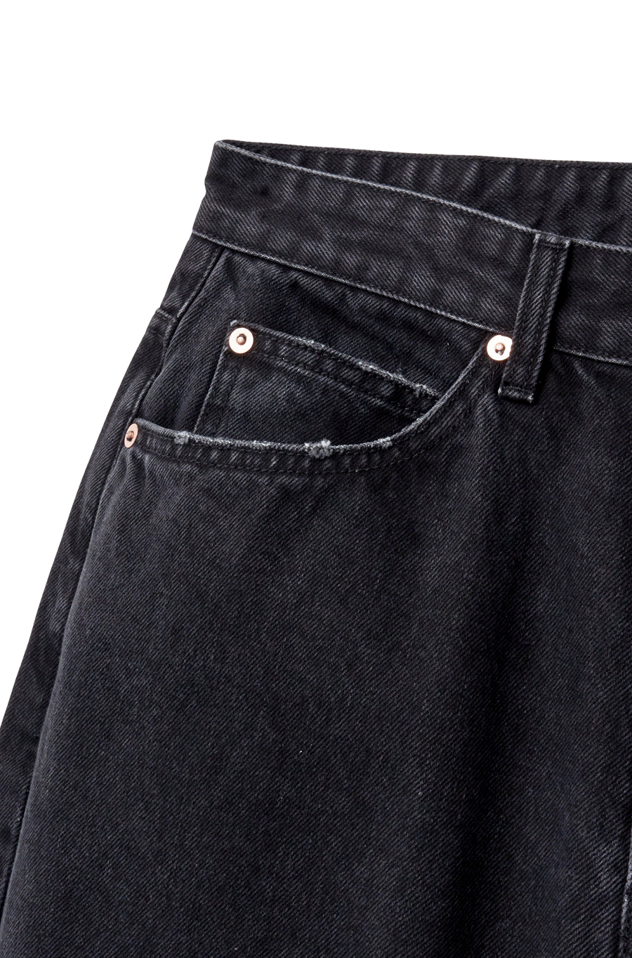 - Grinder distressing detail at pockets and hem